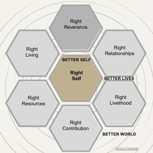 In the middle is my Right Self, to the degree that I can embody that at any given time and within the different stages of my life. Because my spiritual life is core for me, I include Right Reverence as pouring into me. (It may not be as relevant for you).